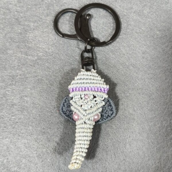 Decorativo y funcional llavero en hilo encerado, diseño elefante. Color gris-rosado. Largo: cms