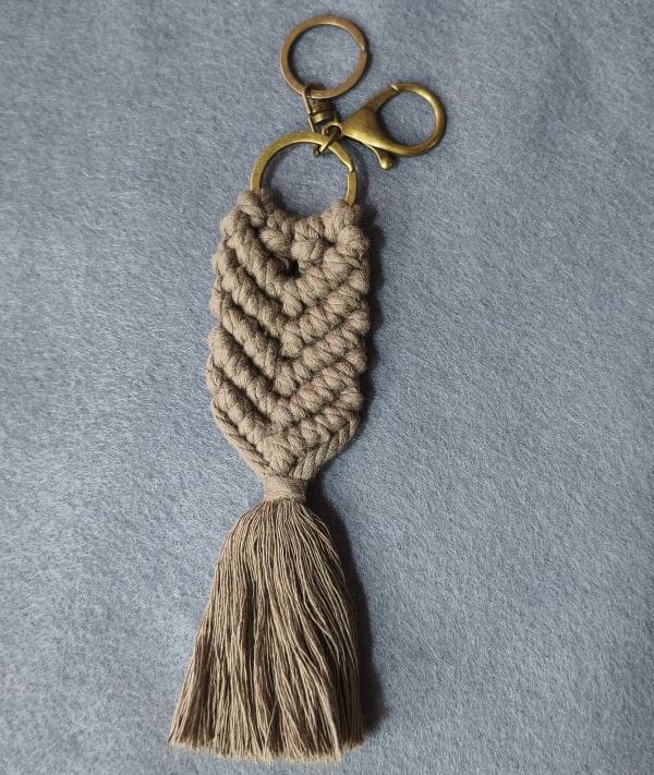 Llavero en cordón de algodón trenzado, color marrón. Largo: cms. Ancho: cms.