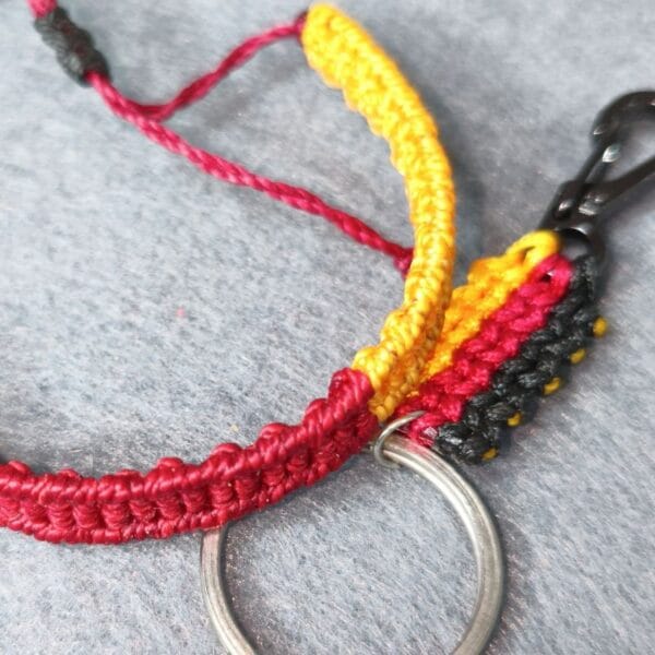 Pulsera y llavero en hilo encerados, colores bandera de Alemania. Pulsdera ancho: cmc;Muñeca: cms.